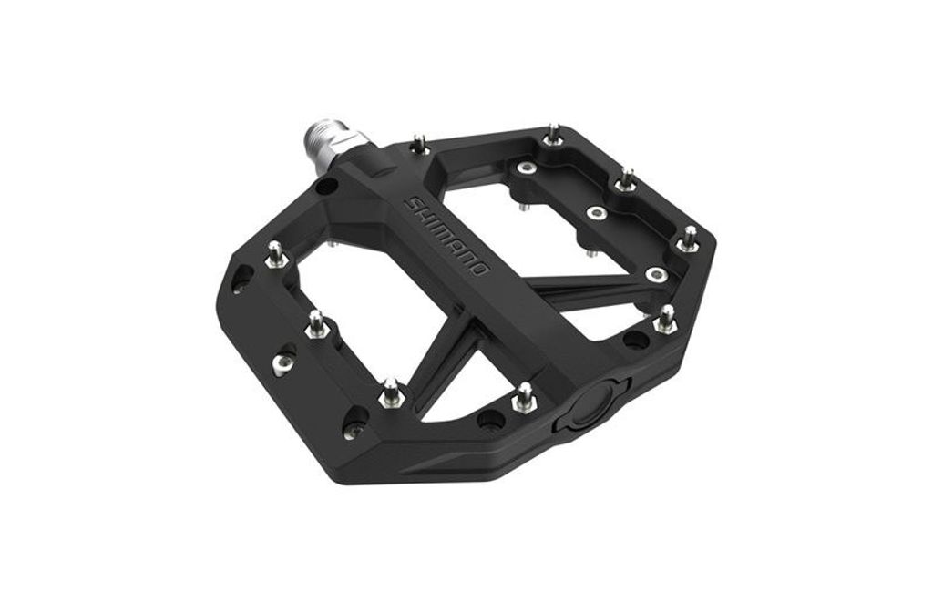 Högklassiga par greppvänliga platta pedaler med en rejäl plattform som känns stabila och säkra under fötterna.